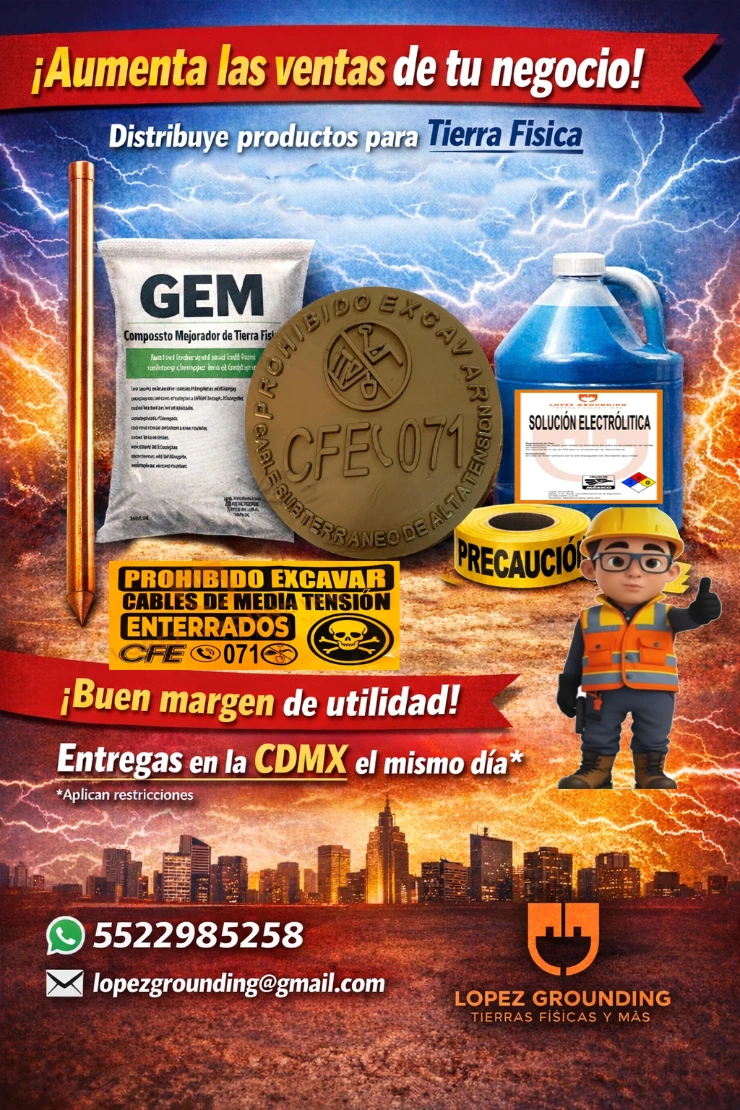 Nuestro kit de tierra física Lopez Grounding está diseñado para quienes buscan máxima eficiencia, baja resistividad y larga vida útil en sus sistemas de puesta a tierra.